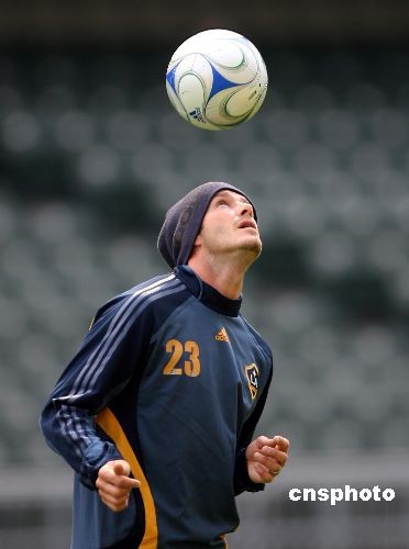 三月八日,英國足球巨星、現效力于美國洛杉磯銀河隊的貝克漢姆在香港大球場與球隊一起訓練,備戰九日將舉行的表演賽。中新社發 武仲林 攝