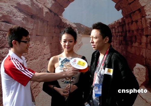 3月24日,北京奧運會圣火在奧運會發源地希臘古奧林匹亞遺址點燃,奧運官網全程視頻直播奧運圣火采集儀式。國際巨星章子怡與搜狐公司董事局主席兼首席執行官張朝陽作為觀禮嘉賓出席儀式,并以奧運官網記者的身份通過電話連線、彩信、博客等方式,從觀禮現場第一時間發回獨家報道。圖為張朝陽(右)、章子怡(中)在接受記者采訪。中新社發 沈晨 攝