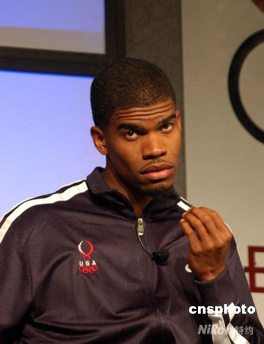 4月16日,美國110米欄名將特拉梅爾在芝加哥出席美國奧運代表隊新聞峰會時表示,去北京參加奧運會的目標(biāo)仍是奪冠。中新社發(fā) 李靜 攝