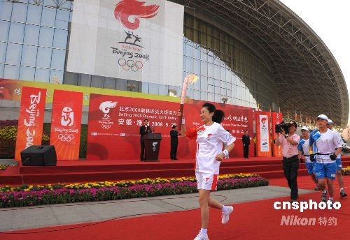 圖:主持人周濤領跑淮南圣火傳遞首棒
