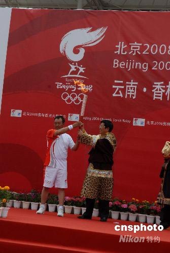 圖:藏族火炬手香格里拉傳遞圣火首棒