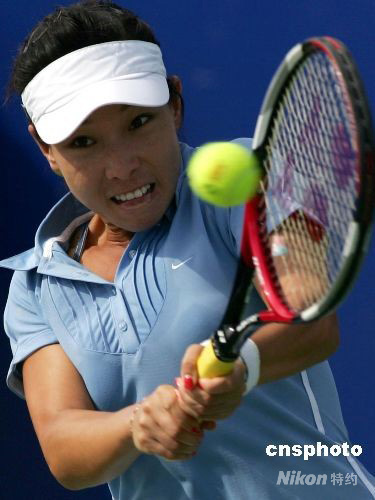 9月25日,2008年中國網球公開賽繼續進行,女單賽場碩果僅存的中國金花鄭潔僅用時69分鐘就以6-1,6-2橫掃日本老將杉山愛,昂首挺進女單8強。鄭潔很可能在4分之1決賽中與2號種子塞爾維亞美少女伊萬諾維奇狹路相逢。中新社發 富田 攝