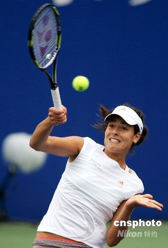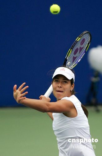9月25日,總獎金額為60萬美元的中國網(wǎng)球公開賽繼續(xù)第4日角逐。在女單第2輪爭奪中,2號種子塞爾維亞美少女伊萬諾維奇走出低谷,戰(zhàn)勝法國公主科內(nèi)特,挺進(jìn)女單8強(qiáng)。伊萬諾維奇女單1/4決賽中的對手將是中國金花鄭潔。中新社發(fā) 富田 攝