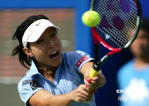 9月26日,2008年中國網(wǎng)球公開賽繼續(xù)進(jìn)行。在下午結(jié)束的一場女單1/4決賽中,中國金花鄭潔經(jīng)過3小時(shí)苦戰(zhàn)以7-6(4)、2-6和6-4力克塞爾維亞美少女伊萬諾維奇,晉級4強(qiáng)。 中新社發(fā) 富田 攝