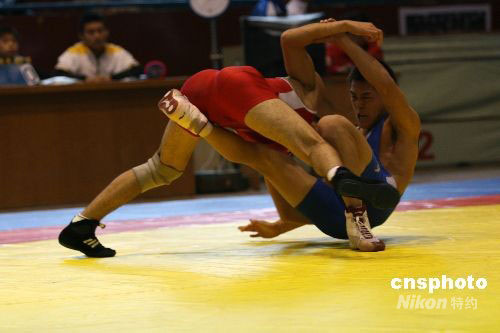 9月27日,運(yùn)動員在進(jìn)行自由式摔跤比賽。當(dāng)日,全國男子自由式摔跤冠軍賽在河南許昌開賽,來自全國各地的340余名運(yùn)動員在為期3天的比賽中展開角逐,比賽采用單敗淘汰全復(fù)活賽制,分別進(jìn)行資格賽、淘汰賽等。本次摔跤比賽由國家體育總局舉摔柔運(yùn)動管理中心主辦,河南省體育局和許昌市體育局承辦。中新社發(fā) 牛書培 攝