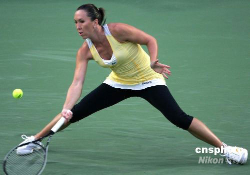 9月27日,2008年中國網球公開賽開始女單半決賽爭奪。頭號種子塞爾維亞美女揚科維奇以6-4、2-6、6-4的比分戰勝俄羅斯紅粉5號種子茲沃娜列娃,率先晉級決賽。中新社發 富田 攝