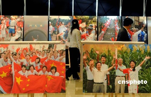 圖為在總結(jié)大會(huì)上,火炬接力的圖片展覽。