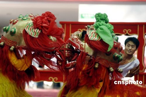 10月27日上午,第六屆全國農運會各項賽事相繼開賽。圖為精彩的舞獅比賽中北獅規定套路的決賽。中新社發 王東明 攝