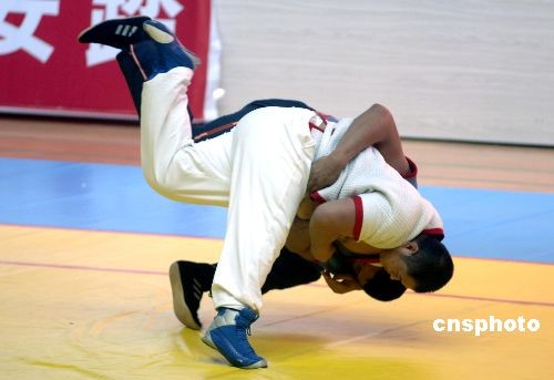 10月28日上午,第六屆全國(guó)農(nóng)民運(yùn)動(dòng)會(huì)中國(guó)式摔跤比賽在福建省泉州市體育中心僑鄉(xiāng)體育館舉行。在為期四天的比賽中,來(lái)自全國(guó)17支代表隊(duì)的80名摔跤好手將為10個(gè)級(jí)別的“跤王”展開激烈爭(zhēng)奪。 中新社發(fā) 王東明 攝
