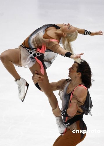 11月8日,2008中國杯世界花樣滑冰大獎賽繼續在北京首都體育館舉行。在結束的冰舞比賽中,俄羅斯選手多姆尼娜/沙巴林奪得冠軍。中新社發 盛佳鵬 攝