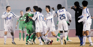 在昨晚的“京津?qū)υ挕敝校鲌?chǎng)作戰(zhàn)的北京國(guó)安隊(duì)2比2戰(zhàn)平天津泰達(dá)隊(duì),雙方各得1分。在比賽的最后階段,濃重的火藥味和兩度群體沖突也給這場(chǎng)比賽帶來(lái)了不和諧音。比賽即將結(jié)束時(shí),郭輝和天津隊(duì)譚望嵩之間發(fā)生了肢體接觸。據(jù)郭輝本人透露,當(dāng)時(shí)譚望嵩試圖對(duì)他飛鏟,在被郭輝躲開(kāi)后,譚望嵩破口大罵。更不和諧的一幕發(fā)生在賽后,天津隊(duì)球員走下場(chǎng)時(shí),以隊(duì)長(zhǎng)曹陽(yáng)為首,高舉雙手向看臺(tái)上的北京球迷豎起了中指。記者親眼看到,直到走進(jìn)球員通道,曹陽(yáng)才將高舉的雙臂放下。(記者 周蕭)