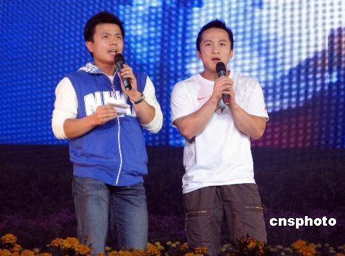 11月17日晚,在“客家祖地”福建龍巖舉行的第五屆中國龍巖投資項目洽談會文藝晚會上,福建龍巖籍奧運(yùn)冠軍張湘祥、石智勇同臺為海內(nèi)外鄉(xiāng)親深情演繹一曲《朋友》。中新社發(fā) 張彩林 攝
