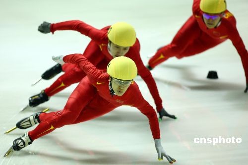 2月20日,大冬會短道速滑比賽在哈爾濱理工大學(xué)滑冰館繼續(xù)進(jìn)行。在女子500米的比賽中,中國選手表現(xiàn)神勇,包攬了該項比賽的前四名。其中劉秋宏(前)以44秒862的成績問鼎冠軍,為中國隊在本屆大冬會上奪得第二枚金牌。李文文和孟曉雪分獲銀牌與銅牌,成績?yōu)?4秒929和45秒084。中新社發(fā) 富田 攝