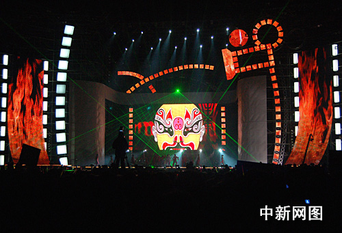 以中國傳統(tǒng)臉譜為背景的第16屆中國金雞百花電影節(jié)開幕式現(xiàn)場