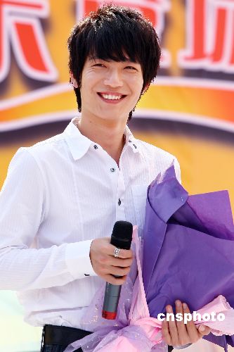 10月28日,超女厲娜和快男陳楚生在南寧參加中國—東盟博覽會為某汽車品牌的新車首發式作宣傳,厲娜和陳楚生為到場的觀眾各獻上三首歌曲,厲娜還臨時客串了一把車模。中新社發 駱文剛 攝