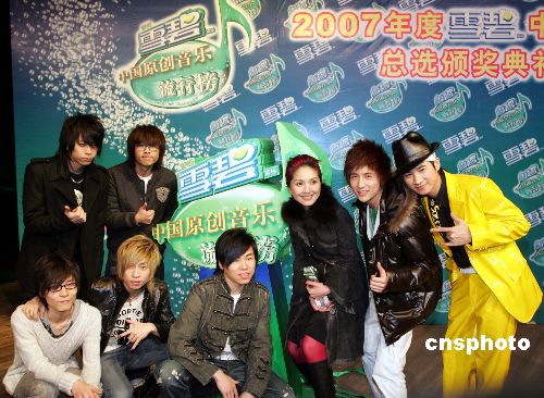 十二月四日,人氣女王楊千嬅、人氣小天王胡彥斌,以及王嘯坤、薛之謙、俞思遠、海明威等眾明星在上海,啟動2007年度“雪碧”中國原創音樂流行榜拉票活動。據介紹,歷時七年的雪碧音樂榜,旨在展示“享受音樂,表達自我”的音樂理念。中新社發 潘索菲 攝