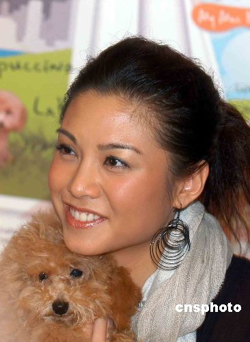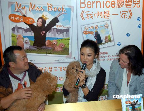 12月17日,香港藝人廖碧兒在記者會上推出首本寵物圖文集《我們是一家》,記載她和這“一家五狗”樂也融融的生潔點滴,著名影人曾志偉出席記者會以示支持。中新社發 譚達明 攝