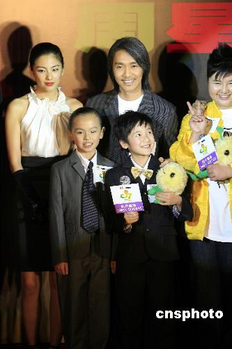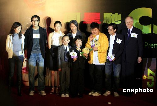 一月二十三日晚,周星馳身兼導演、編劇、演員,歷時三年打造的電影《長江七號》在香港舉行全球首映禮,特首曾蔭權夫婦等百位政界、商界、演藝界嘉賓出席觀看,支持香港創意工業。中新社發 王麗南 攝
