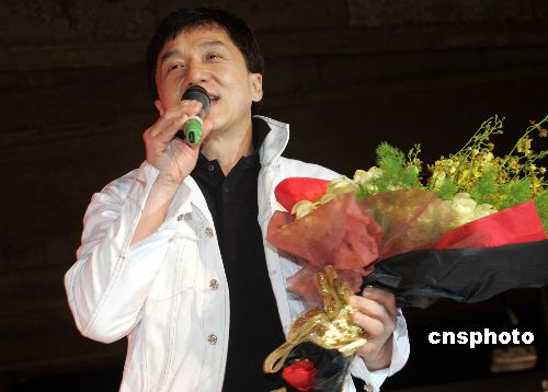 1月29日晚,二00八奧運會形象大使、著名國際功夫巨星成龍來到昆明,出席在翠湖會舉行的“Jackie Chan杰克成08春夏新裝發(fā)布會”。中新社發(fā) 甘娜 攝