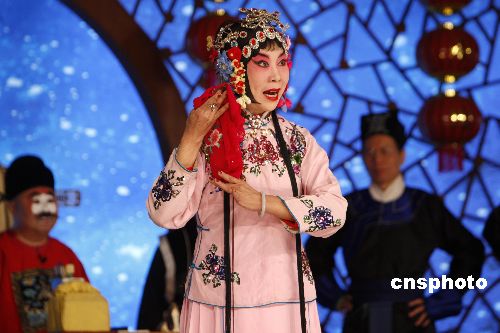 2月9日,北京老舍茶館在新春佳節推出了京味民俗傳統表演,反串賀歲牌子戲《打面缸》,令北京市民體驗了原汁原味的老北京文化。“打面缸”作為舊時最為常見的玩笑戲之一,在春節封箱演出中最受演員和觀眾的歡迎,是老北京傳統中的賀歲戲之一。光緒十五年五月,在頤和園,同光十三絕中的譚鑫培、時小福會同總管太監李蓮英、劉德印及著名演員羅壽山、穆鳳山等人反串演出《打面缸》,開反串玩笑戲之先河。中新社發 杜洋 攝