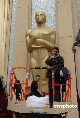 第八十屆奧斯卡金像獎2月24日晚將在好萊塢揭曉。當(dāng)天中午柯達(dá)劇場門口最大一尊奧斯卡雕塑揭去雨衣,準(zhǔn)備迎接頒獎盛典。中新社發(fā) 張煒 攝