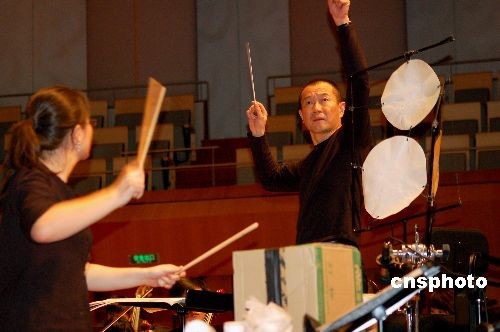 3月31日,世界著名音樂家譚盾先生創作并指揮的《絕對有機2008》大型交響樂,在北京國家大劇院進行緊張彩排。當晚,這臺以水和紙等純天然物質發出的聲音為創作主題的綠色環保音樂在國家大劇院上演。中新社發 潘旭臨 攝