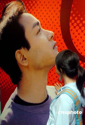 四月一日,香港文化中心舉辦“聲動·情動---張國榮音樂之旅”展覽會,紀念香港歌影紅星張國榮逝世五周年。圖為女影迷在“哥哥”的大型肖像前緬懷。 中新社發 鄧慶樂 攝