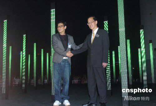 四月十一日晚,由香港藝術(shù)發(fā)展局主辦、Microwave籌辦的“燈陸‧亞高高”聲光互動(dòng)媒體藝術(shù)展在香港尖沙嘴星光大道開幕,民政事務(wù)局局長(zhǎng)曾德成與影星劉德華在揭幕后,率先體驗(yàn)由英國(guó)著名國(guó)際藝術(shù)團(tuán)隊(duì)United Visual Artists (UVA)創(chuàng)作的“Volume”所帶來的視聽覺體驗(yàn)。中新社發(fā) 鄧慶樂 攝
