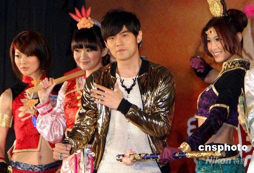 4月15日,在線游戲《真·三國無雙Online》在臺北舉行公測發布會,周杰倫擔任其2008最新代言人,并由其親自操刀特地為此創作并執導MV《無雙》。中新社發 杜洋 攝