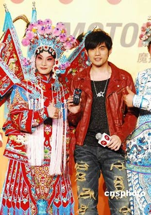 周杰倫在某代言活動現(xiàn)場吊嗓學(xué)京劇
