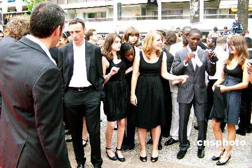 5月24日,是第61屆法國戛納國際電影節(jié)的最后一個競賽日,德國電影大師文德斯的《帕勒莫約定》和法國影片《墻壁之間》的正式登場,宣告本屆電影節(jié)各個單元的所有參賽片、參展片全部亮相完畢。圖為《墻壁之間》主演弗朗索瓦·貝戈多和眾學(xué)生演員準備走上紅地毯。中新社發(fā) 司樂 攝