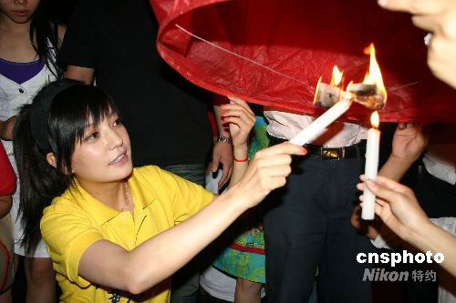 圖:趙薇點燃孔明燈祈福四川平安
