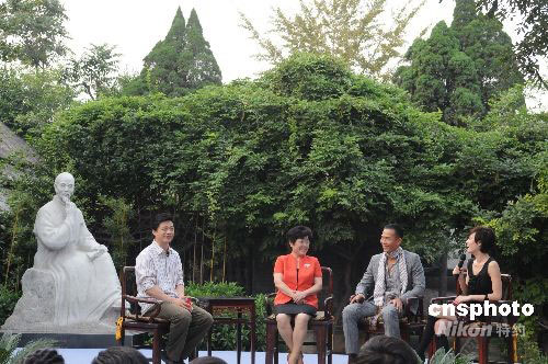 9月16日,《畫皮》主要演職人員周迅、陳坤、孫儷、戚玉武來到聊齋故里山東省淄博市淄川區(qū)蒲家莊,舉行《畫皮》全球首映式。《畫皮》主題曲《畫心》的演唱者張靚穎也在現(xiàn)場傾情演繹了這一蕩氣回腸的歌曲。下午4點,著名主持人崔永元和《電影傳奇》節(jié)目還專門在蒲松齡故居進行了專訪,蒲學(xué)研究專家馬瑞芳現(xiàn)場進行點評。淄博是歷史名著《聊齋志異》作者蒲松齡的故鄉(xiāng),《畫皮》是其代表作。經(jīng)過長達一年的籌備與拍攝,東方新魔幻巨制《畫皮》將于9月26日與全國觀眾見面。中新社發(fā) 閆盛霆 攝