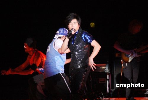 11月15日晚,大陸歌手胡彥斌在臺(tái)北舉辦2008《男人歌》個(gè)人演唱會(huì)。他成為大陸歌手在臺(tái)灣開演唱會(huì)的第一例。圖為胡彥斌臺(tái)北演唱會(huì)情形。中新社發(fā) 黃少華 攝
