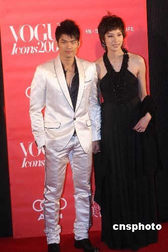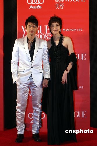 V0GUE2008年度盛典12月6日夜在北京銀泰中心舉行。羽壇“神雕俠侶”林丹、謝杏芳情侶檔高調(diào)亮相十指相扣走上紅毯秀甜蜜,林丹穿著休閑西裝搭配三顆扣子解開的襯衣,謝杏芳也一改賽場上的樸實(shí),一身黑色露肩晚禮服,手拿精致小香包,女人味十足。林丹一路都非常體貼的輕挽著女友,兩人果真是金童玉女般的完美組合。中新社發(fā) 楊可佳 攝