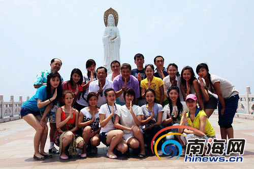 有說有笑的本山大叔是繼今年春節過后攜妻帶兒女到三亞度假療養后,第二次重游南山,并認植一棵菩提樹與南山結緣。但這次陪伴他身邊不是他的家人,而是他的一個由10多名青春亮麗的美女演出團隊。該美女團隊是在博鰲、三亞等地參加表演后,到南山放松心情的。