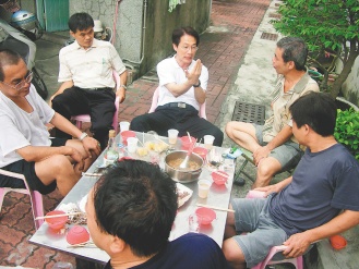 中新網6月29日電 據臺灣《聯合報》報道,中國國民黨大臺南市長參選人郭添財日前深入臺南市南區,走訪21名國民黨籍里長。郭添財與里長伯、民眾一起在庭院用餐、聊天、聽取建議,展現草根性與親和力。