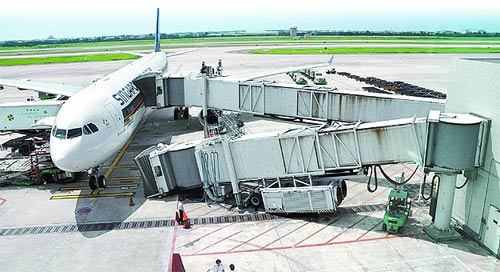 中新網6月29日電 據臺灣《蘋果日報》報道,象征臺灣門面的桃園國際機場、第二航廈D6登機門空橋28日突然斷裂。事發時,一旁空橋正接待新加坡航空公司旅客下機,近300名旅客被“砰”聲巨響嚇得尖叫連連,所幸斷裂空橋當時無人使用,未釀成傷亡。