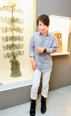 他對(duì)三國(guó)文物如數(shù)家珍,最被“搖錢(qián)樹(shù)”吸引,他笑說(shuō):“這里一定要拍一下,希望財(cái)源廣進(jìn)哩!”他表示很欣賞曹操,“我很容易想太多,也常會(huì)心軟,所以沒(méi)辦法跟曹操一樣只為完成一件事?tīng)奚芏嗳,?dāng)然沒(méi)辦法當(dāng)梟雄!