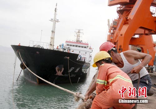中新網泉州7月15日電(肖咸強 鄭偉偉 韓建勛)15日11時許,中國長江航運集團“寶洲”號瀝青船,滿載4146噸瀝青從臺灣高雄港直航抵達福建泉州市泉港區肖厝港沙格碼頭。