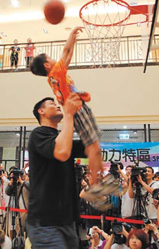 姚明說,很高興到高雄縣和災(zāi)區(qū)小朋友聊天交流,“希望能帶給大家愉快的體驗(yàn)”。他教導(dǎo)學(xué)生們灌籃技巧,以簡單的互動教學(xué),傳達(dá)他的愛與關(guān)懷。