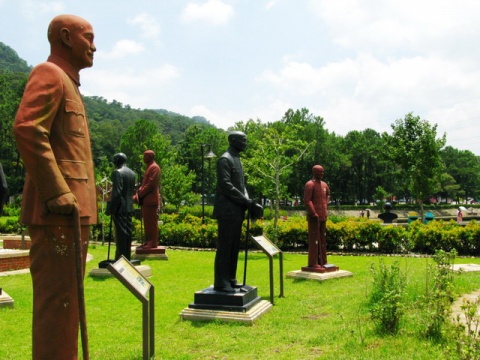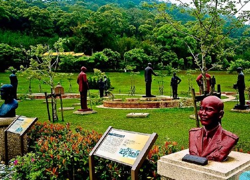 教授告訴我,這個雕像群落多達兩百余座蔣介石雕像,因上世紀90年代后期“去蔣化”運動,各地矗立的銅像紛紛拆除,面臨回爐煉銅的命運。慈湖所在的桃園縣當時正值“藍營”執政,于是將各地拆除的銅像收來,選出其中藝術水準較高者,建成雕塑群。