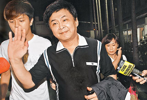 賀一航昨天凌晨獲檢方諭令依新臺(tái)幣六萬(wàn)元交保,經(jīng)女友Judy、兒子曾治豪幫他辦完手續(xù)后,賀神情疲憊地步出桃園地檢署,被媒體問(wèn)及有無(wú)召妓玩“3P”、涉毒時(shí),賀勉強(qiáng)擠出笑臉說(shuō):“謝謝大家!兩天后我會(huì)跟大家說(shuō)清楚。”隨即與Judy跳上兒子曾治豪開(kāi)的紅色小客車(chē)離去。