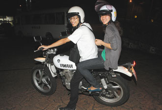 離臺前一晚,臺灣同學載著黃曉琳到陽明山,要等擎天崗的日出。大陸多"禁摩",騎摩托車是難得體驗。