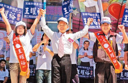 為防“棄黃保楊”效應(yīng)發(fā)生,金溥聰日前下令禁止黨籍民意代表與楊秋興“私通”,然而,國民黨提名的市議員參選人王耀裕昨日成立競選總部,卻邀楊秋興到場并站臺。