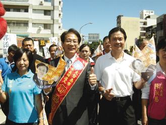 國(guó)民黨提名大臺(tái)南市長(zhǎng)參選人郭添財(cái)上午也辦理登記,他強(qiáng)調(diào)有三大參選理由:臺(tái)南要和平、和順,要尋回臺(tái)南精神;要拼經(jīng)濟(jì),生活要好過。國(guó)民黨秘書長(zhǎng)金溥聰?shù)綀?chǎng)稱贊郭添財(cái)是國(guó)民黨推薦的優(yōu)秀人才,全黨上下一要力挺,今天登記后,郭添財(cái)?shù)倪x情一定一路攀升。