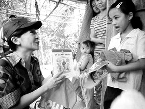 8 月底,島內(nèi)作家吳淡如來到越南探望了自己認養(yǎng)的女孩阮垂銀。據(jù)悉,正在念小學三年級的阮垂銀有一個小兩歲的妹妹,父親是木工,但因病無法工作,全家就靠媽媽編斗笠、賣魚,每天賺1.6 美元維持生活。阮垂銀一家住在約3.3 平方米大的鐵皮屋里,晚上共擠一張木床。吳淡如到訪時當?shù)卣麓笥,阮垂銀家到處漏雨,由于屋內(nèi)沒有灶臺,她淋著雨在石頭搭成的爐子上給來客燒開水泡茶。