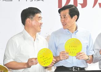 馬英九更肯定郝龍斌垃圾減量的成績,還說“‘環保署長’來做臺北市長果然不同凡響”,并!芭_北市興興旺旺,郝龍斌心想事成”,隨后更寫下“幸福城市,好上加好”的祈福文字。