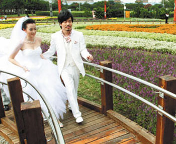 藝人宣傳"甜蜜花博" 百對新人花博景點拍婚照(圖)