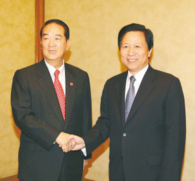梁保華代表中共江蘇省委,熱烈歡迎宋楚瑜主席再次訪問江蘇。他說,多年來,宋主席和親民黨堅持體現“一個中國”原則的“九二共識”,旗幟鮮明地反對“臺獨”,堅定維護兩岸同胞和中華民族利益,為兩岸關系實現歷史性轉折發揮了重要作用,為推動兩岸交流合作作出了積極貢獻。兩岸關系實現歷史性轉折兩年多來,兩岸大交流、大合作、大發展不斷向前推進,兩岸同胞越來越感受到交流合作、互惠雙贏的好處,也越來越深刻地認識到兩岸關系和平發展是民心所向、大勢所趨。
